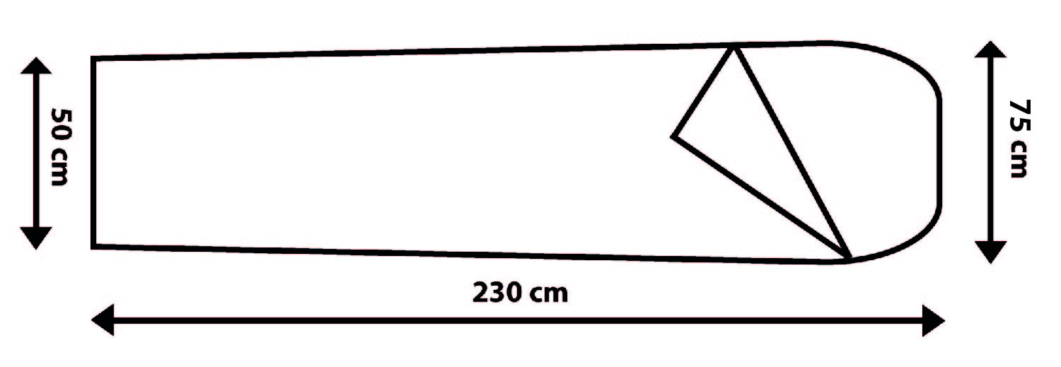 Pour sac de couchage forme momie, dit «sac à viande», ouverture sur le côté de 50 cm.