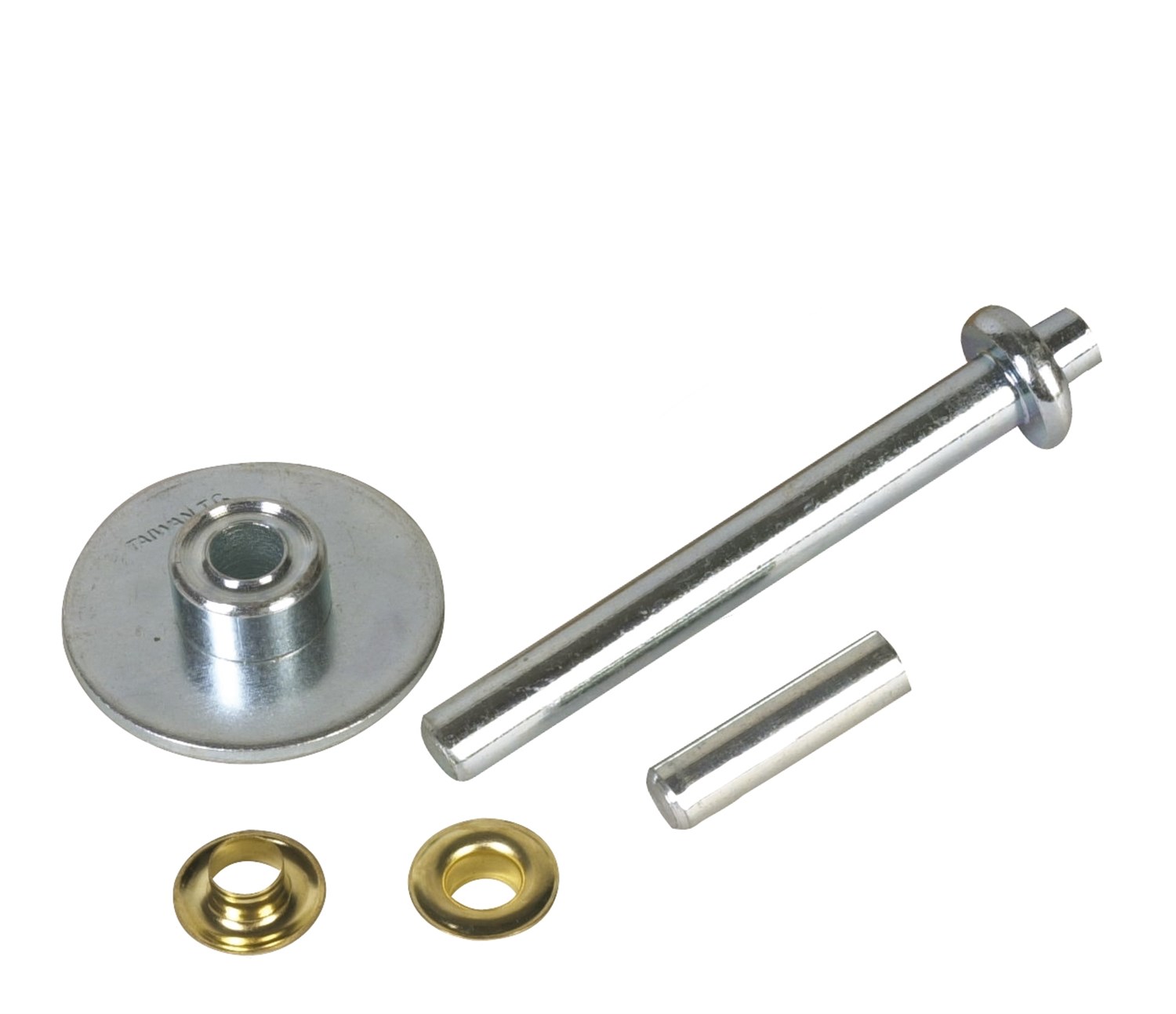 Œillets + rondelles avec 1 emporte pièce mâle et femelle et 1 socle de frappe métal.