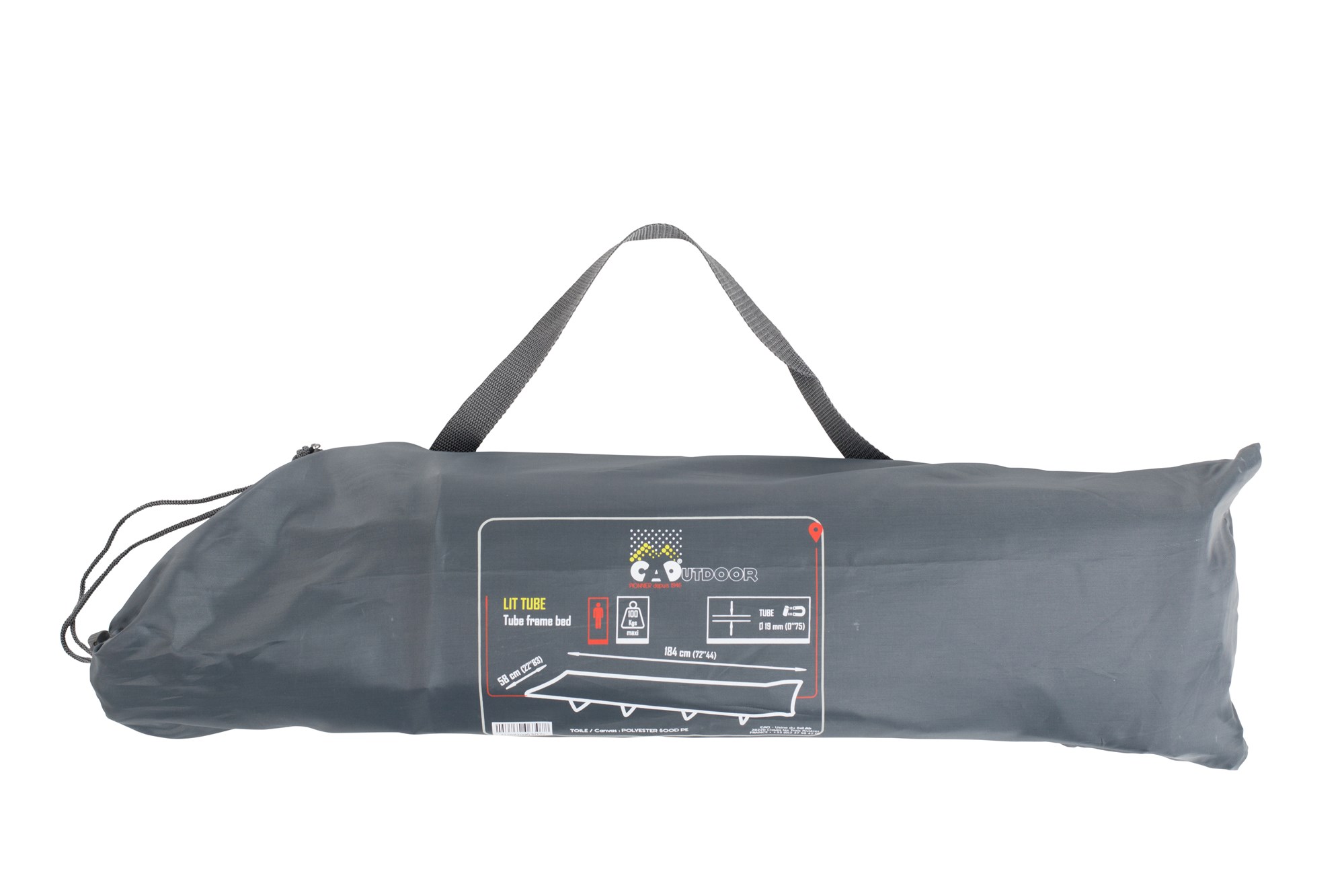 Lit de camp entièrement démontable à 4 pieds pour plus de stabilité.