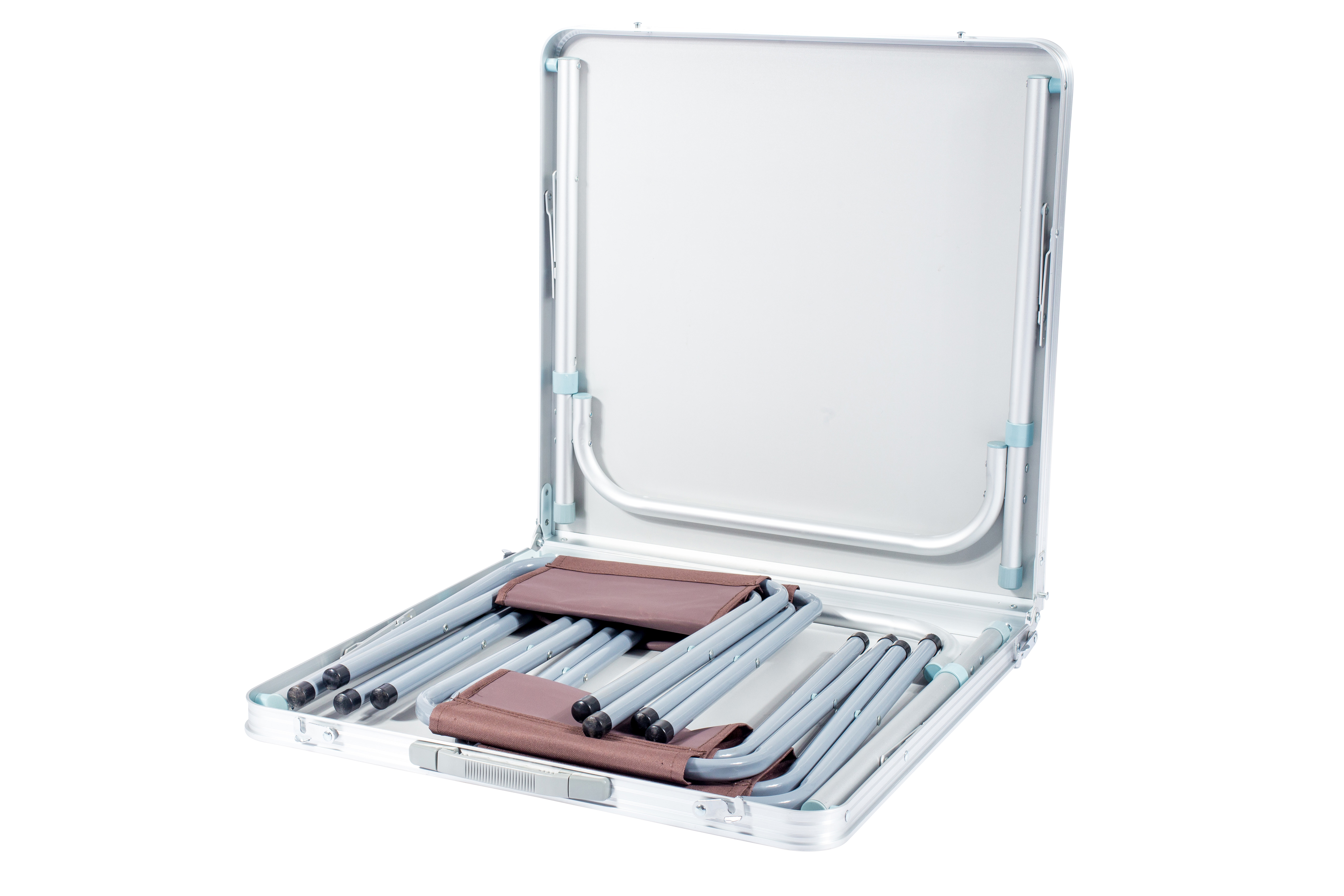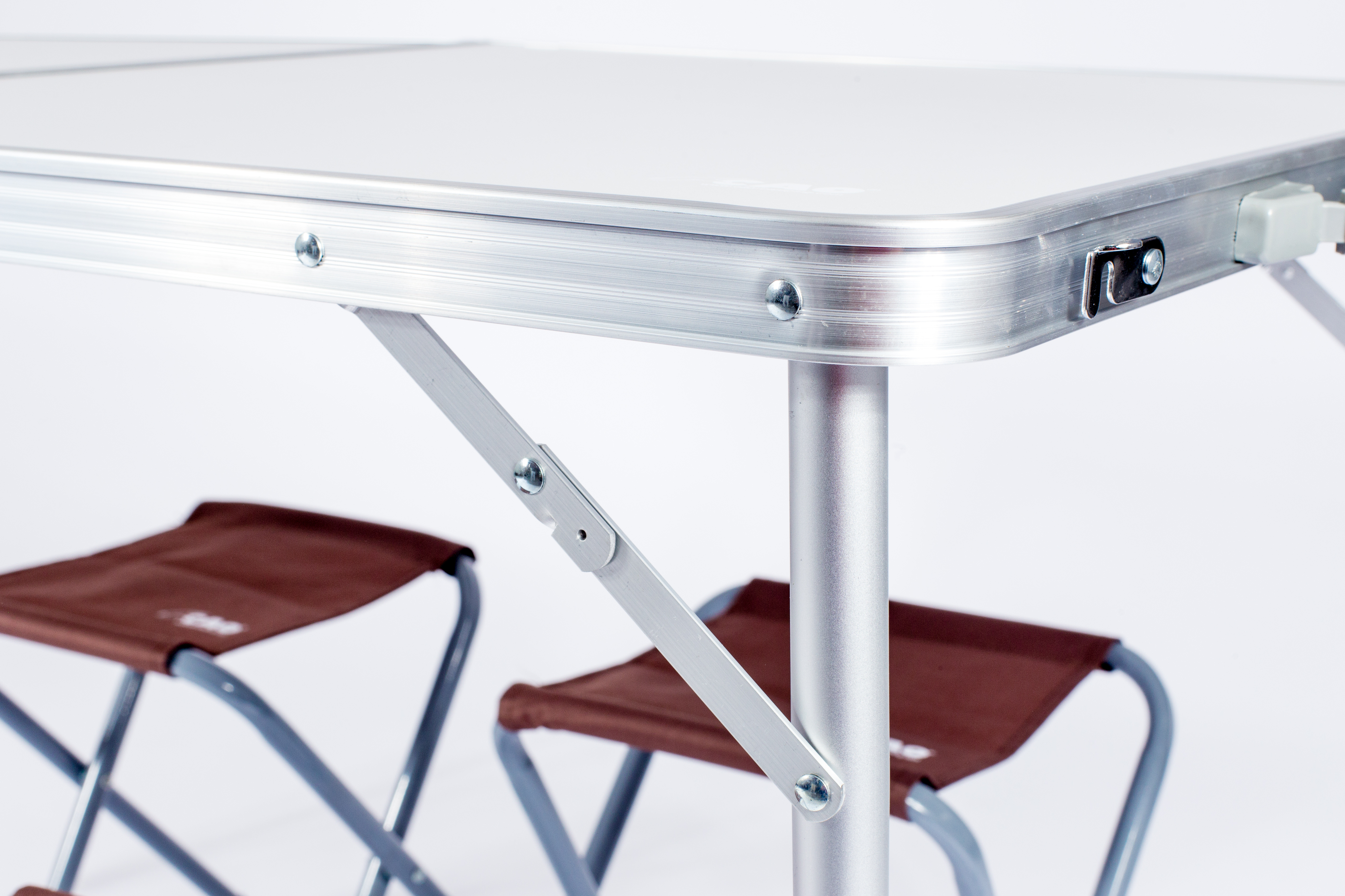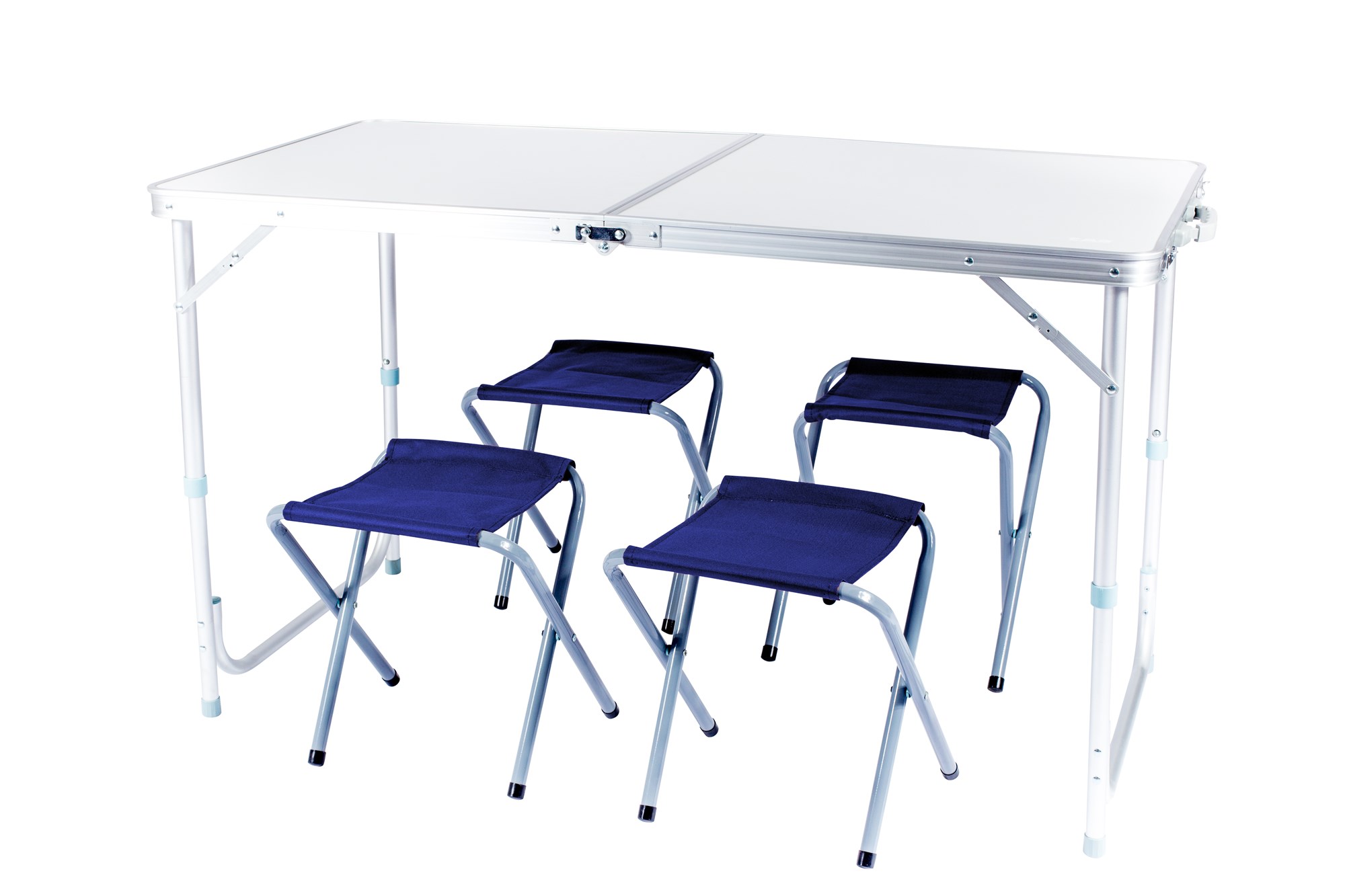 Table en aluminium pour 4 personnes avec tabourets.
