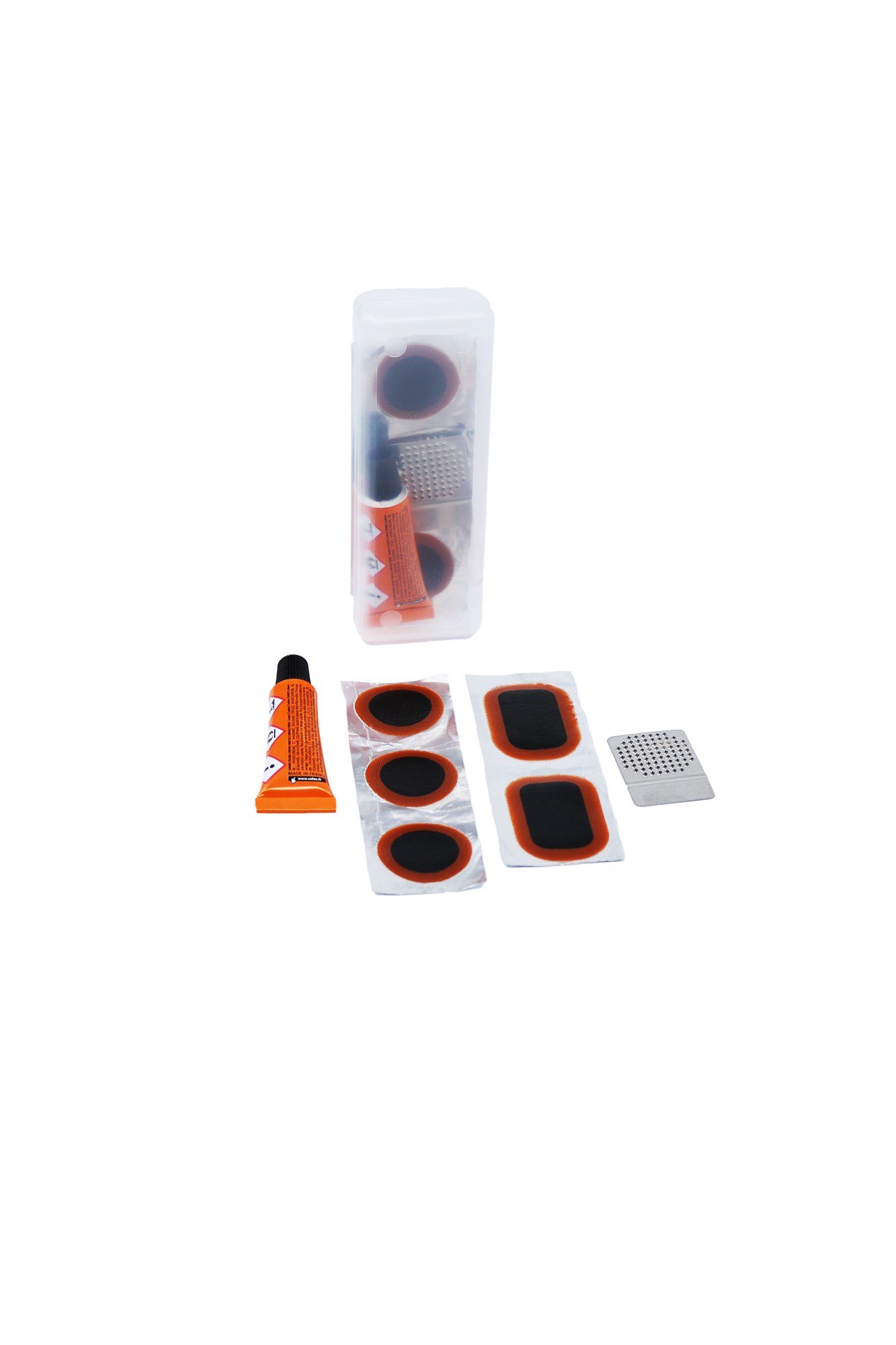 5 pièces vulcanisantes à froid, 1 tube dissolution et 1 râpe émeri.