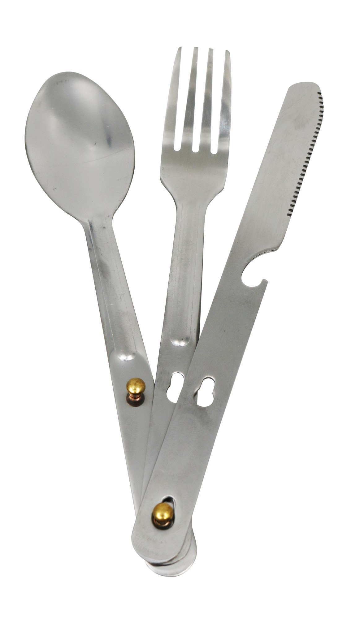 Couverts (couteau avec décapsuleur + cuillère + fourchette) avec agrafe.