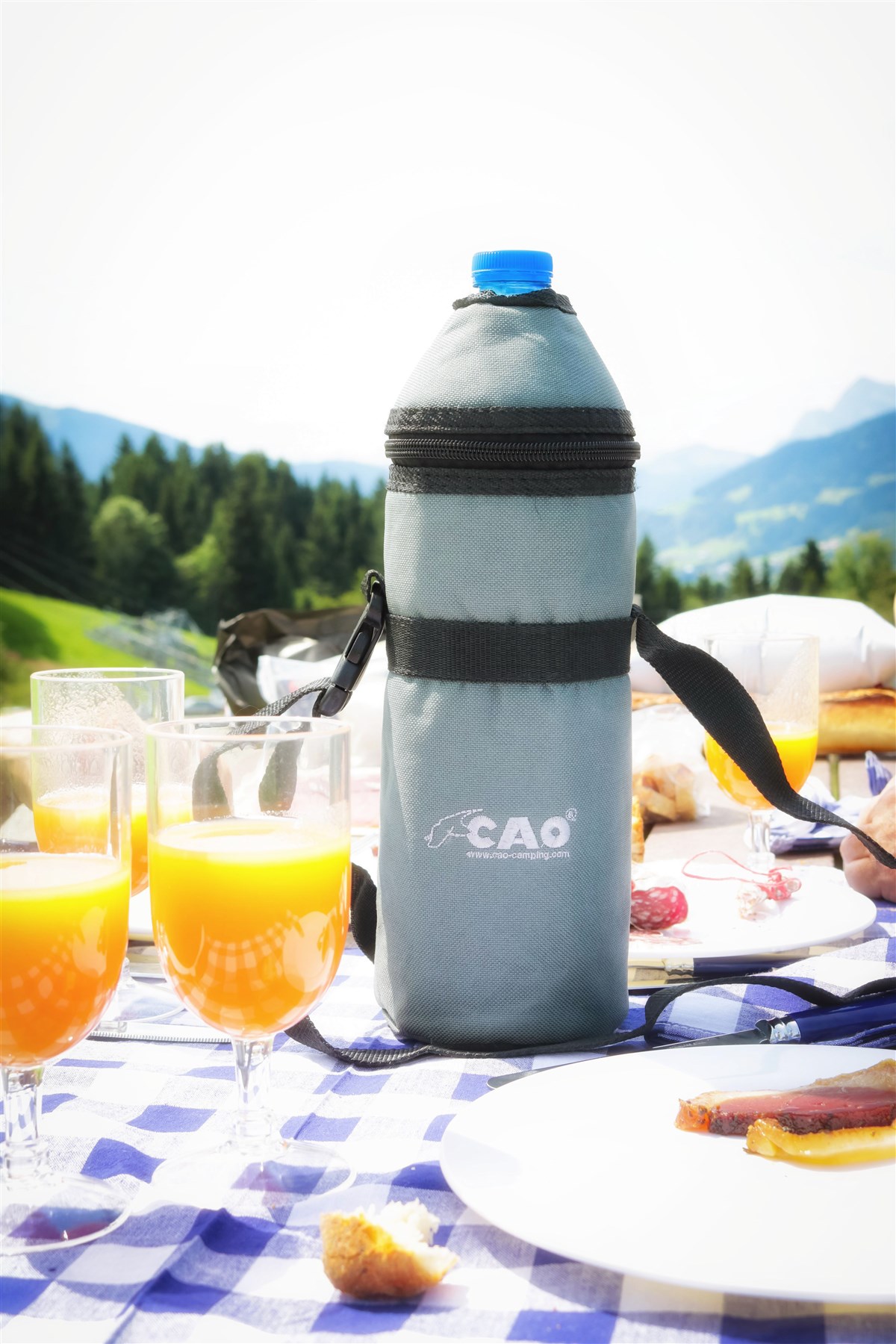 Pour modèles de bouteille plastique d'eau ou autres boissons d'1,5 litre. Zippée dans le haut. Bandoulière réglable. Isolation aluminisé intérieure.