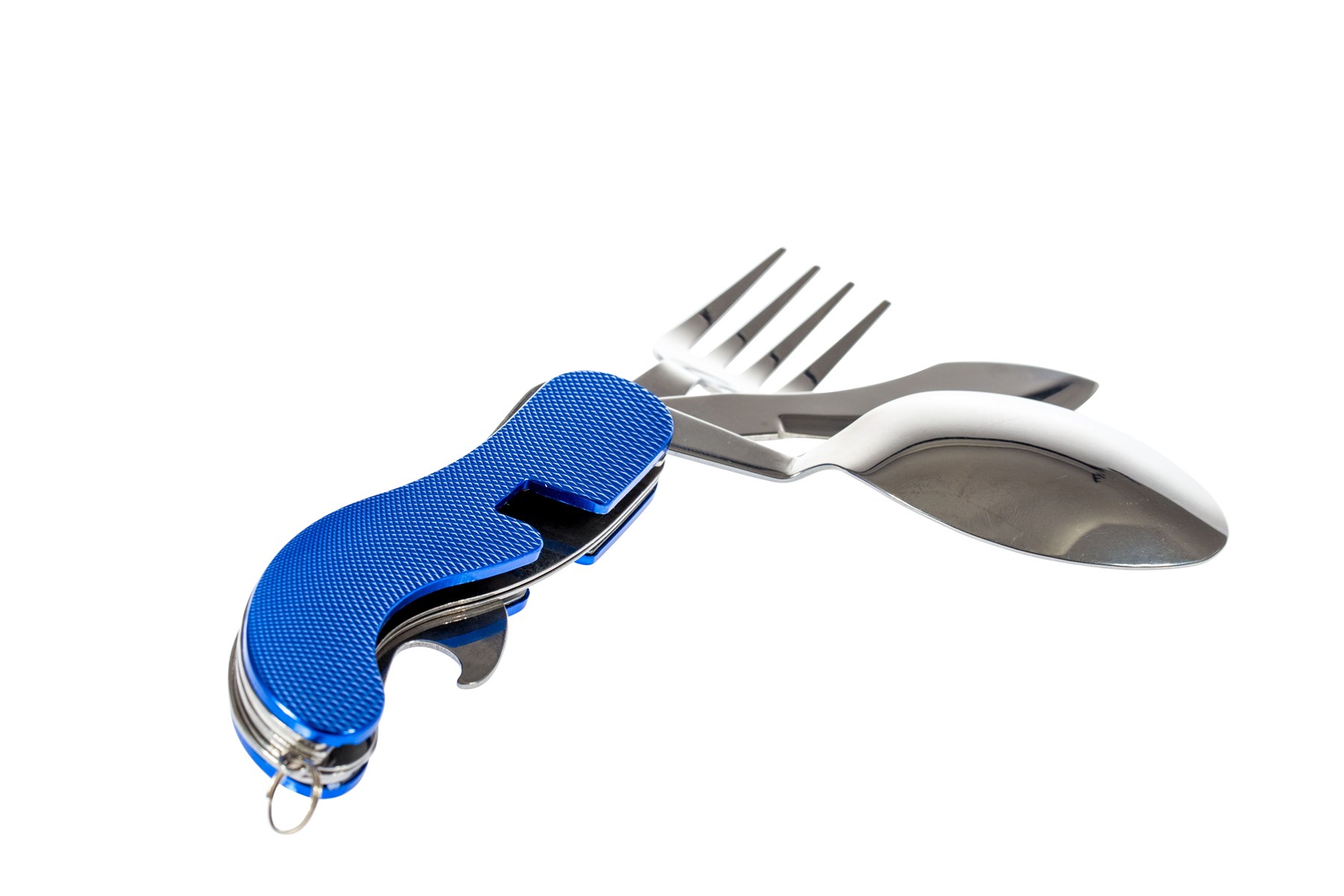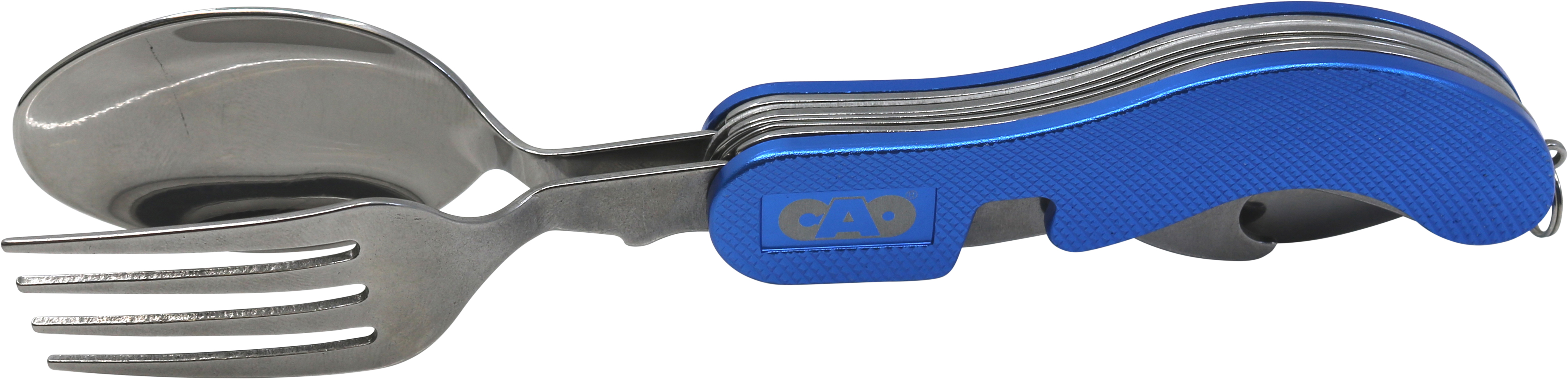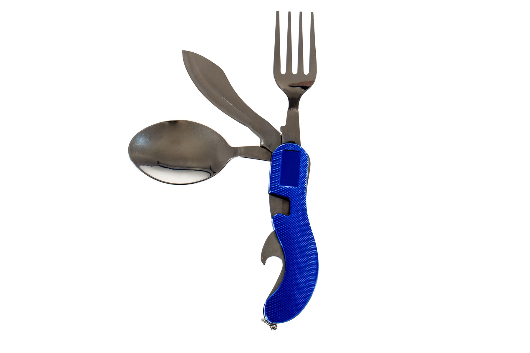 Couvert 4 en 1 : Fourchette, couteau, cuillère et décapsuleur.