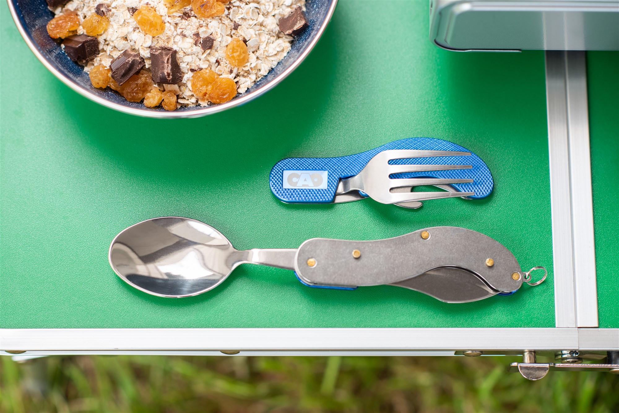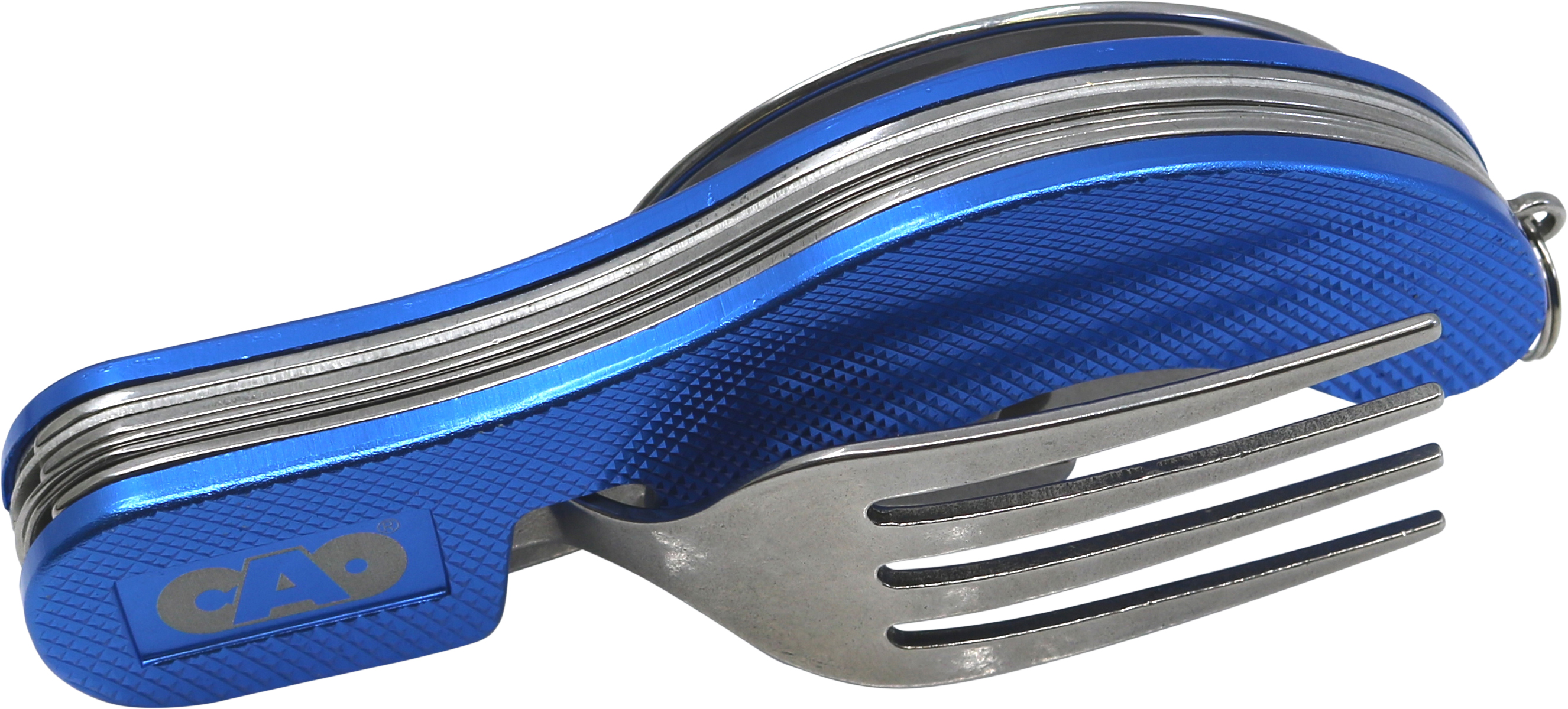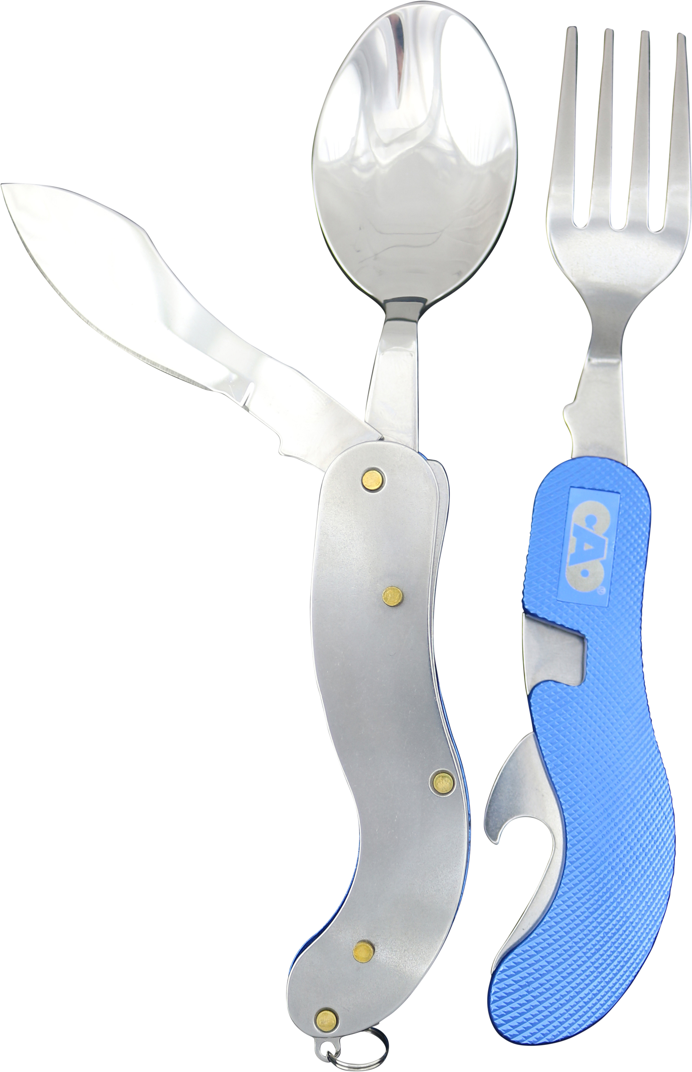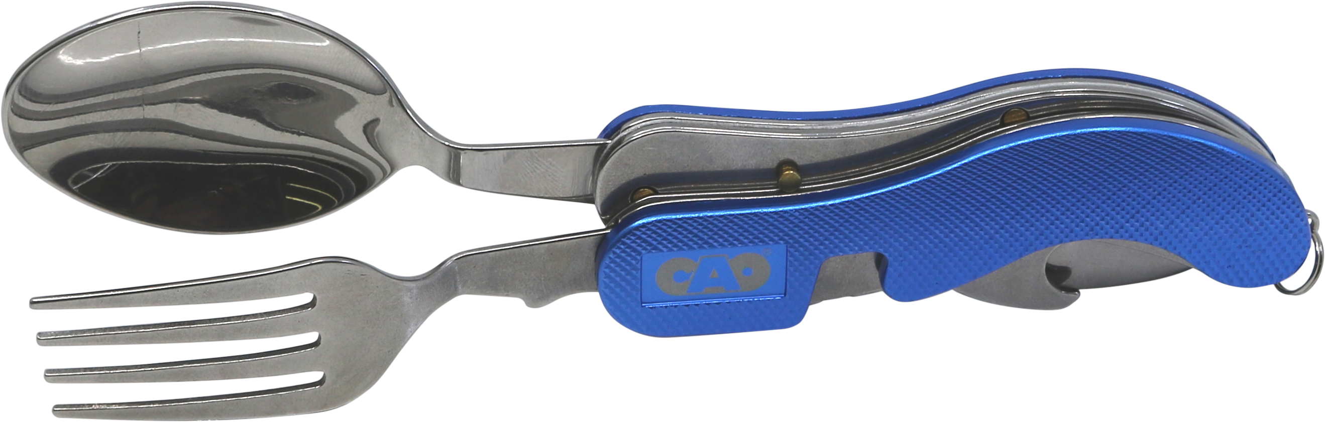 Couvert 4 en 1 : Fourchette, couteau, cuillère et décapsuleur.
