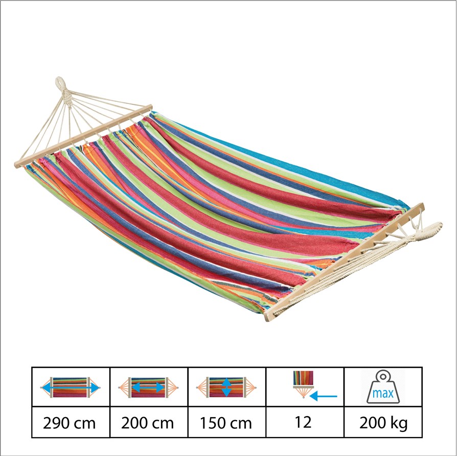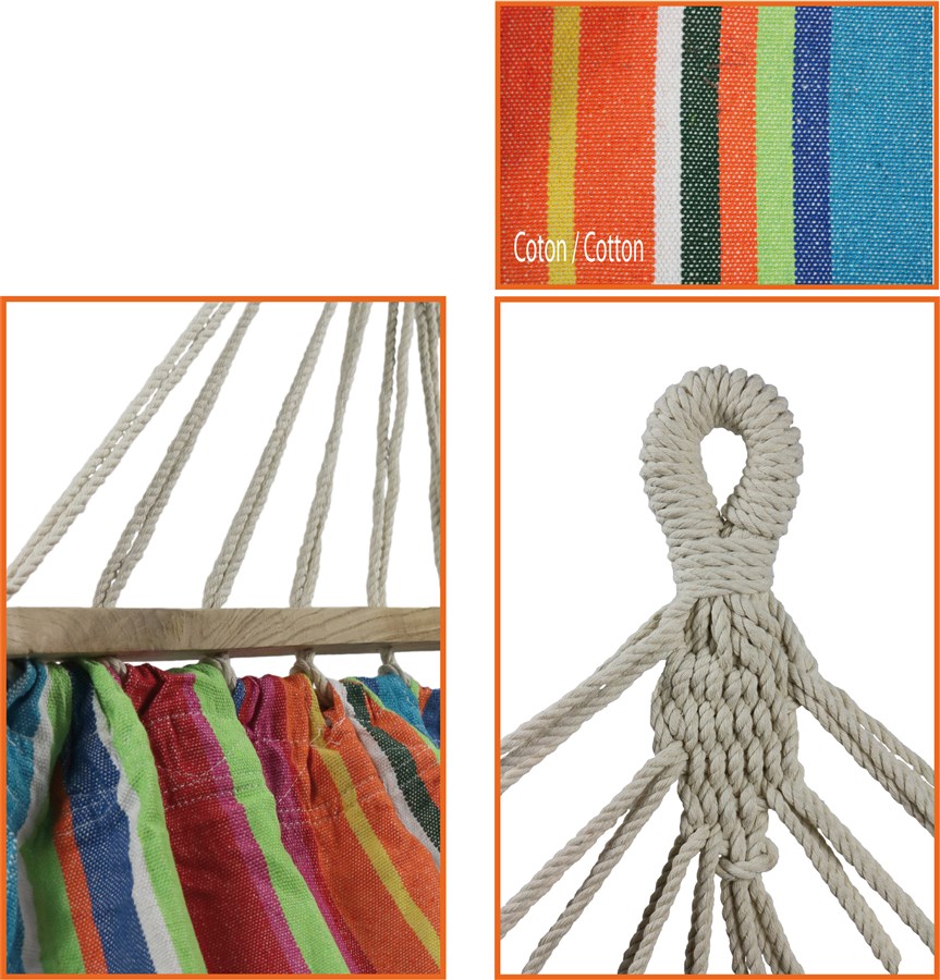 Hamac grande largeur. Ecarteur bois de 98 cm.