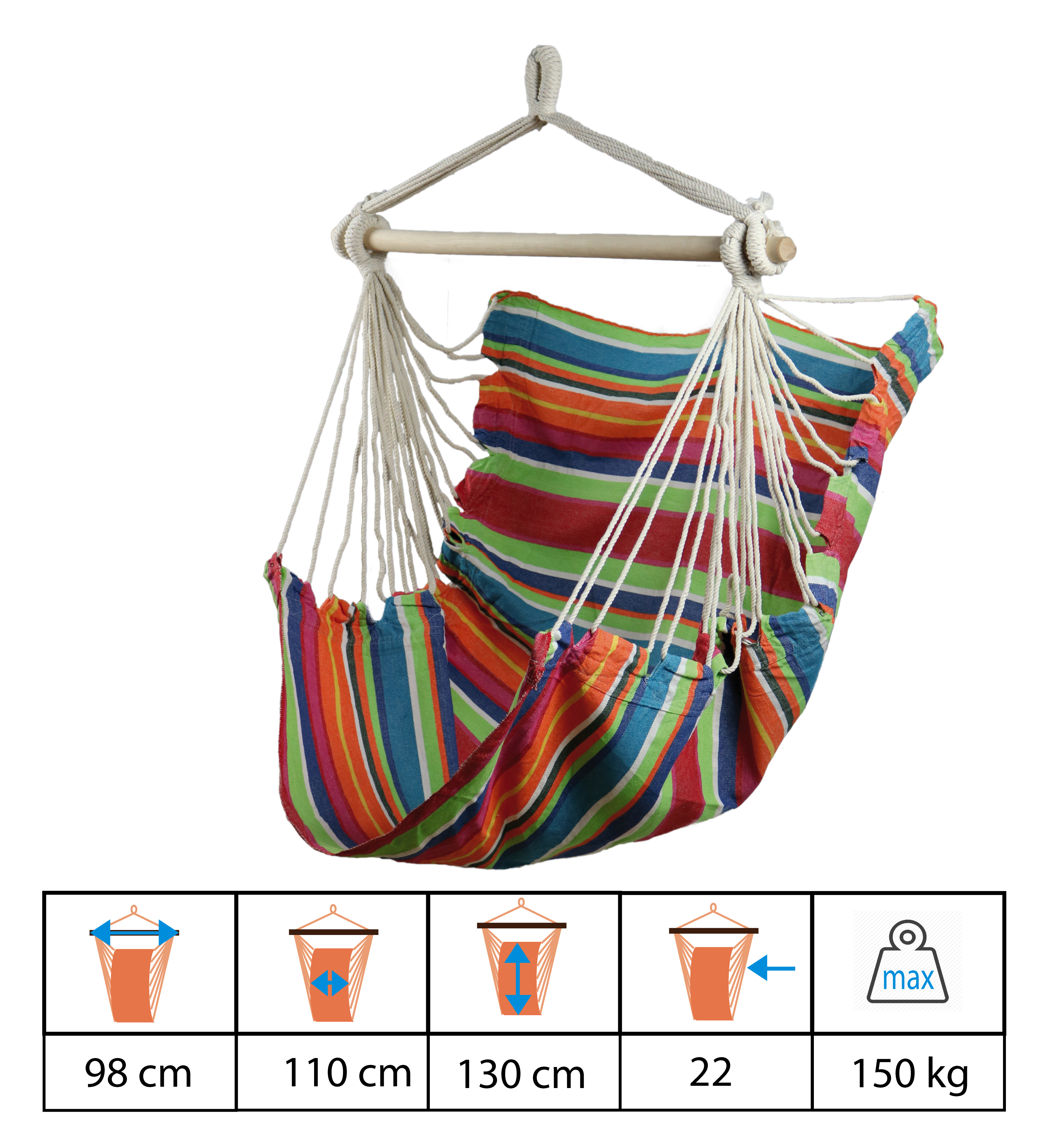 Hamac chaise avec écarteur bois de 98cm.