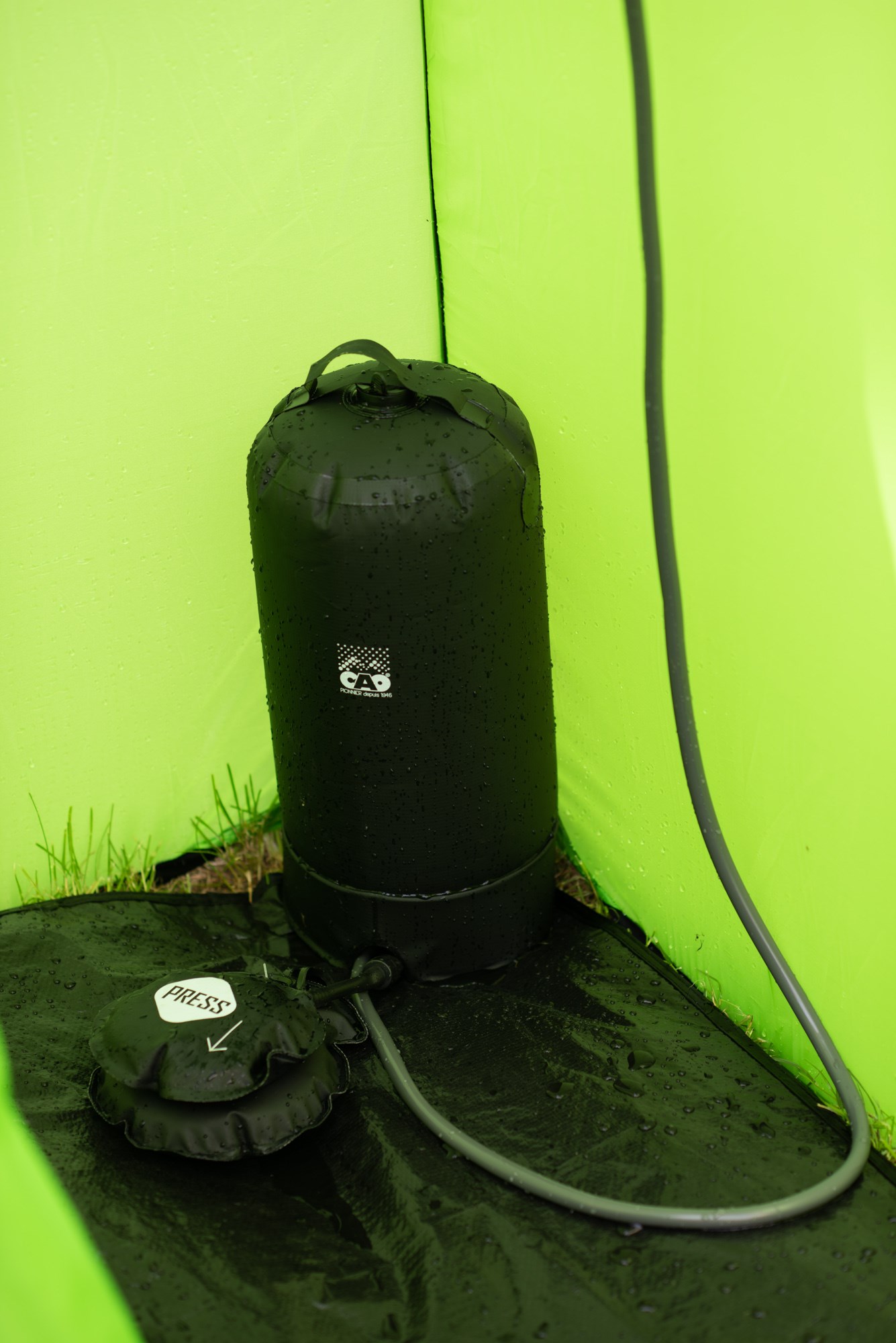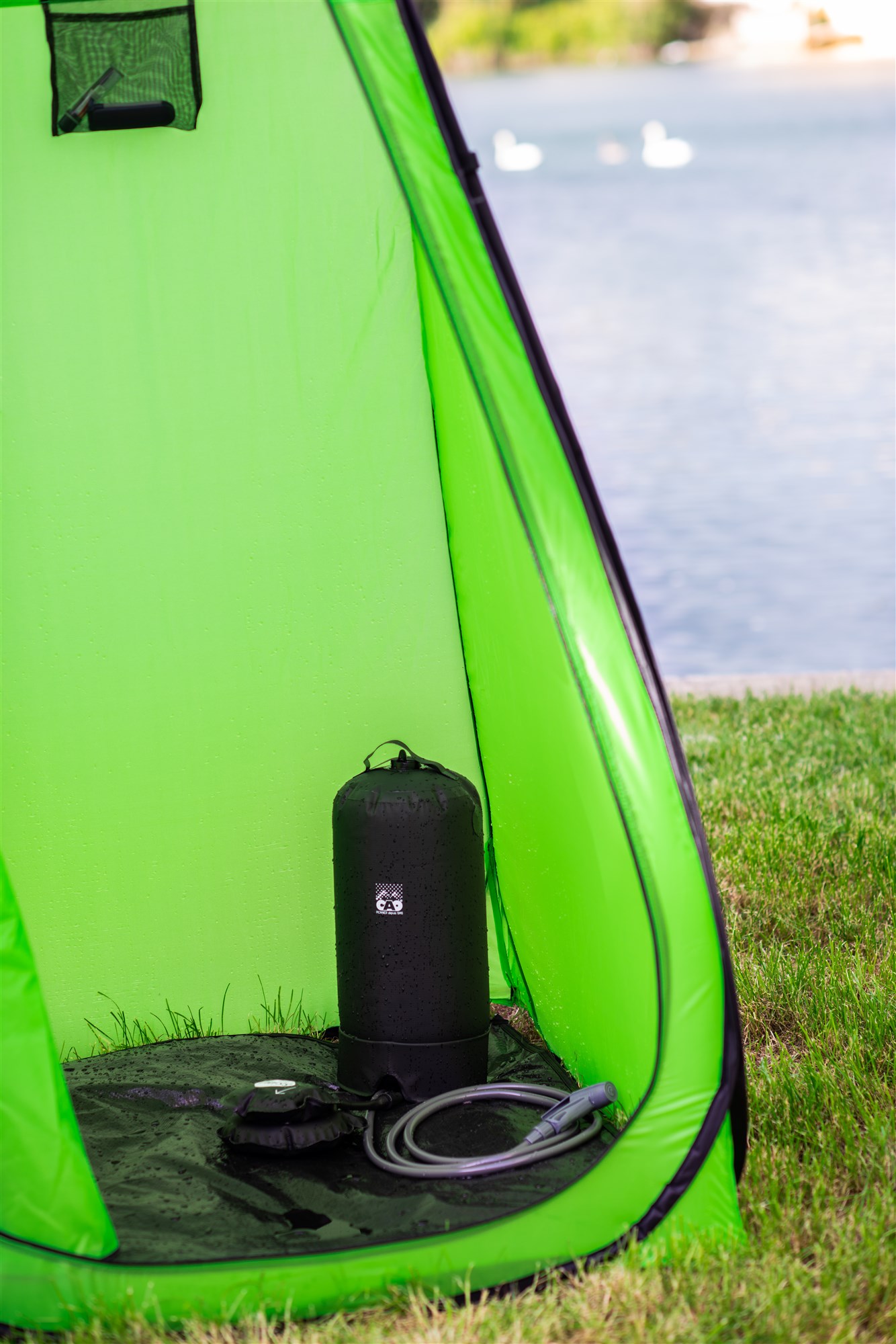 Une fois qu'elle ne sert plus, rangez la douche dans sa sacoche livrée et le tour est joué, une fois vide l'encombrement est minimal !