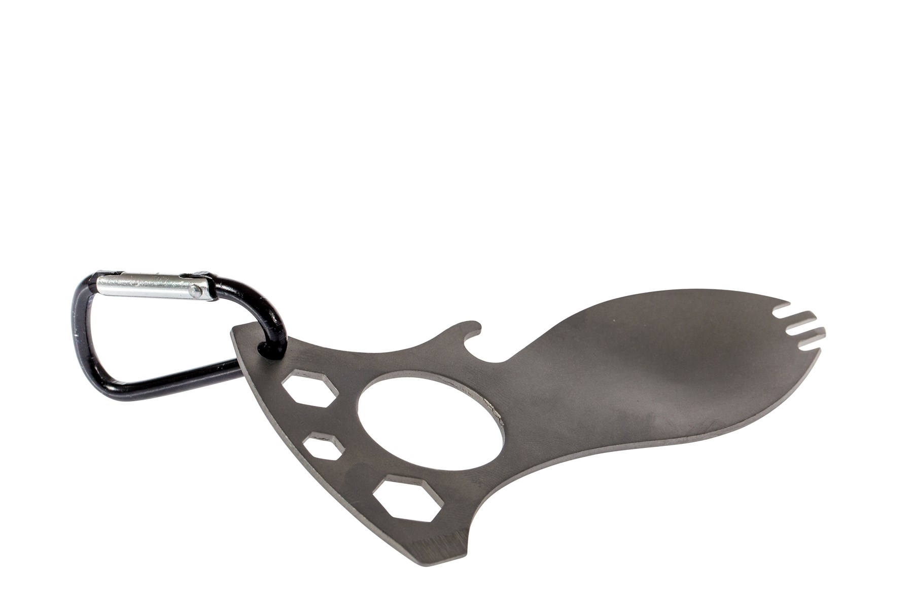 Comprend cuillère, fourchette, décapsuleur, tournevis et trois clès héxagonales.