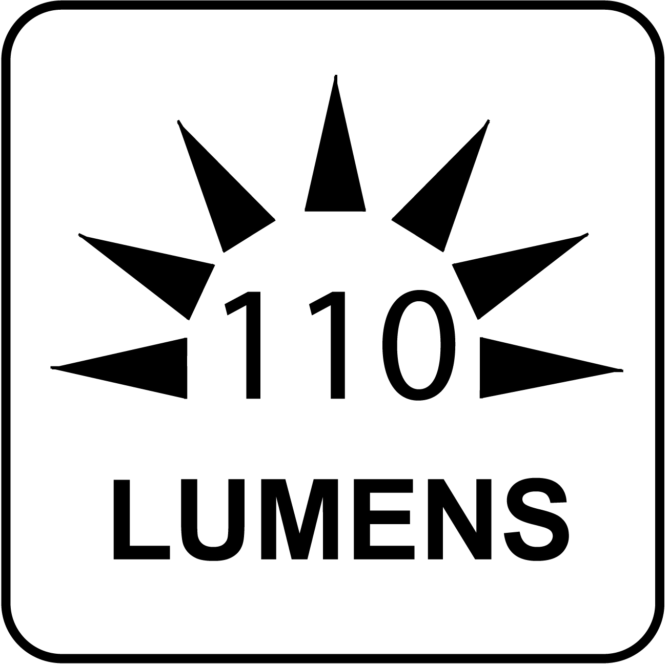3 types d'éclairage : 100% (110 lumens - 4h d'autonomie - éclairage à 90m), 50 % (40 lumens - 12h30 d'autonomie - éclairage à 58m), 1 led blanc clignotant.