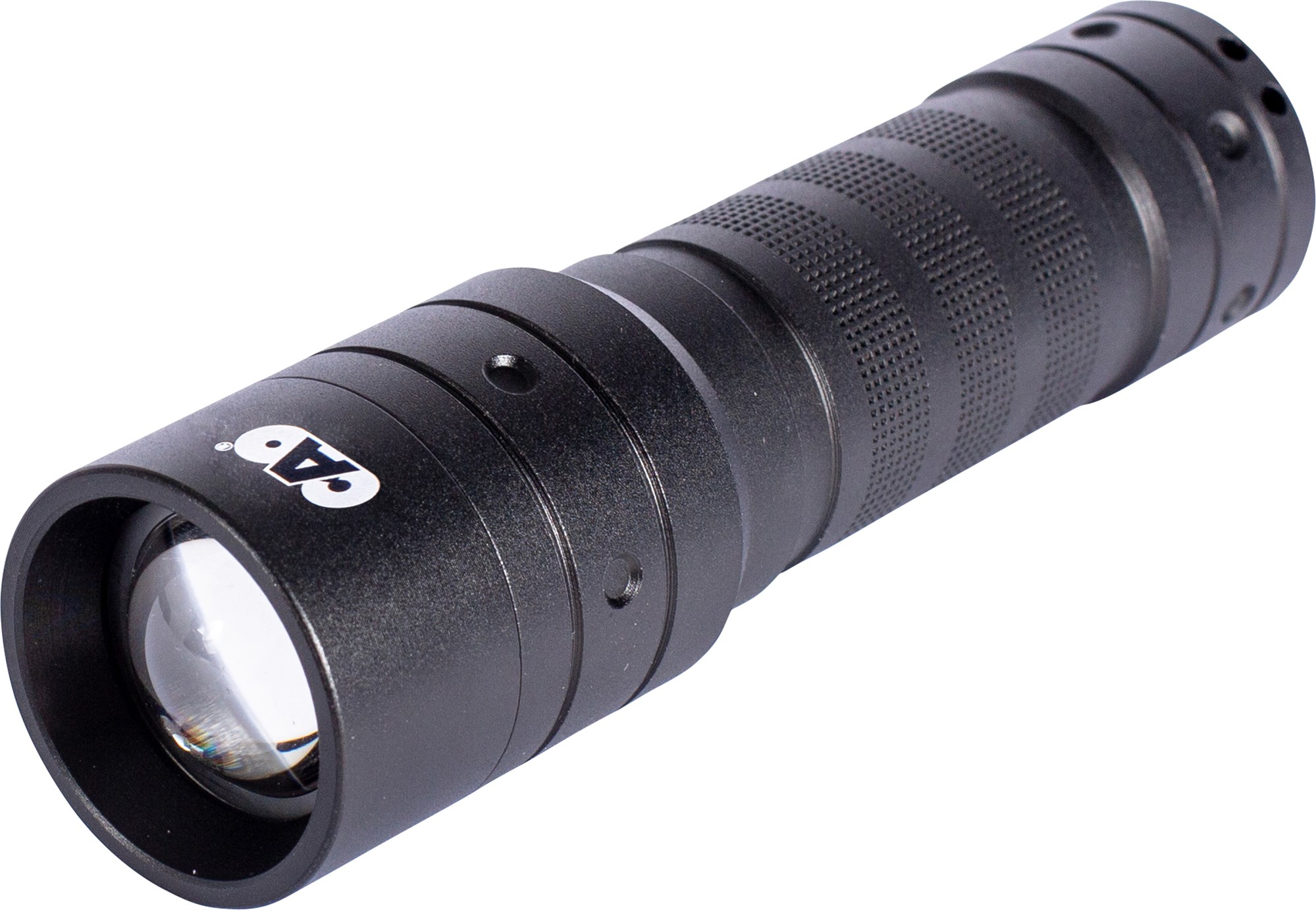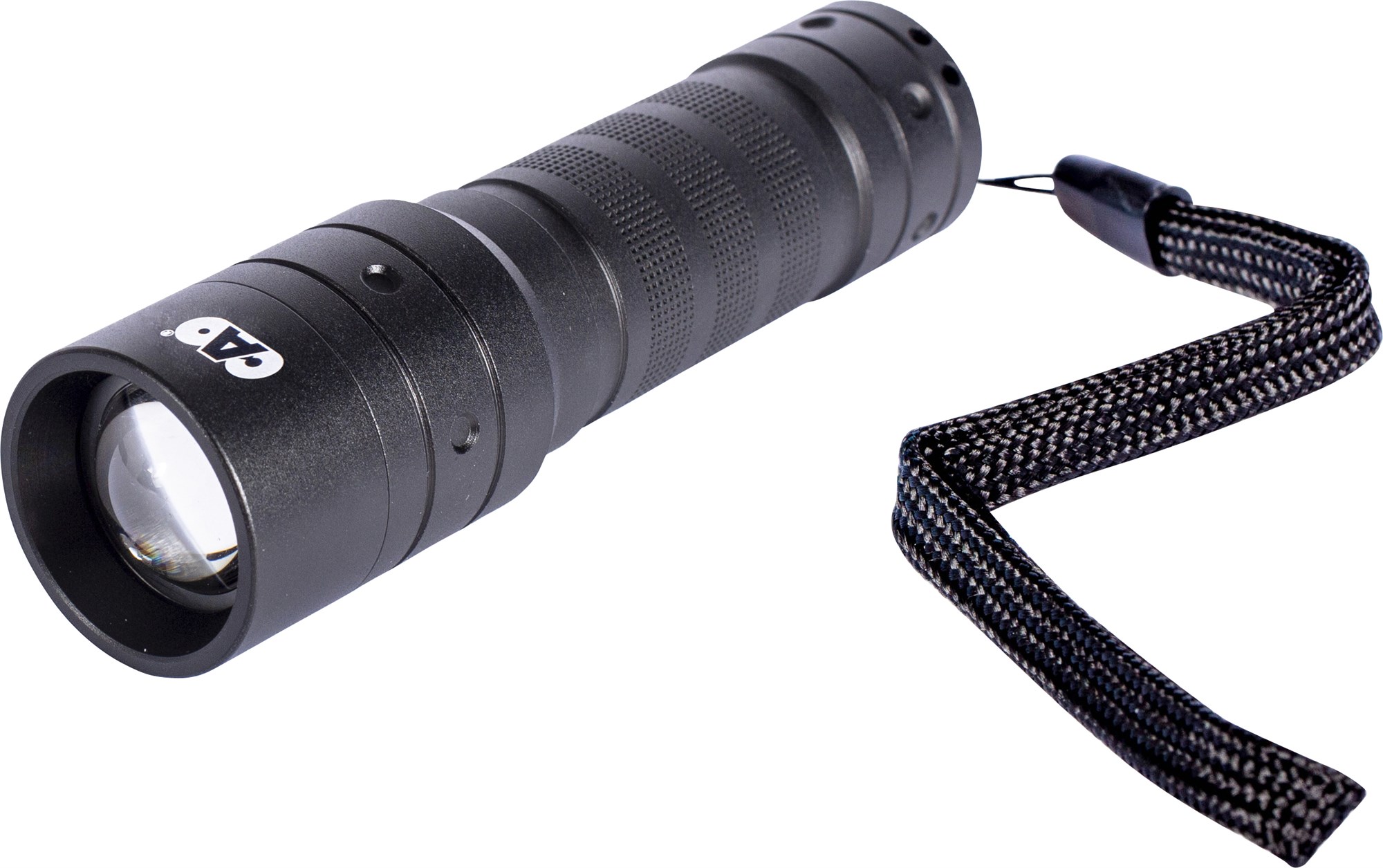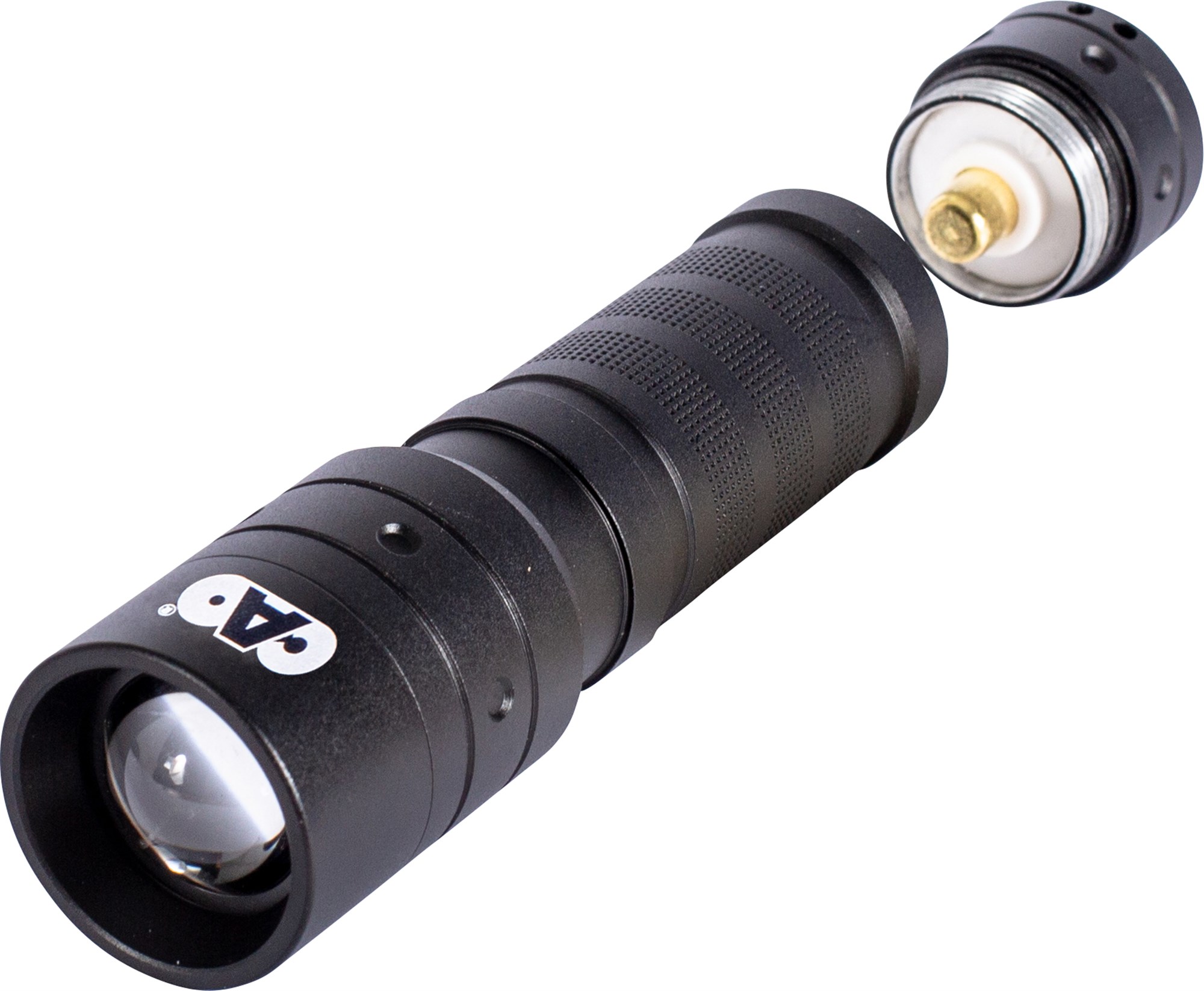 Lampe torche en aluminium et compacte. Zoom ajustable pour adapter la faisceau à une utilisation particulières. 3 types d'éclairage : 100% (350 lumens - 2h30 d'autonomie - éclairage à 125m) et 30 % (100 lumens - 9h d'autonomie - éclairage à 60m) et fonction clignotante. CREE XP-G3 350 lumens