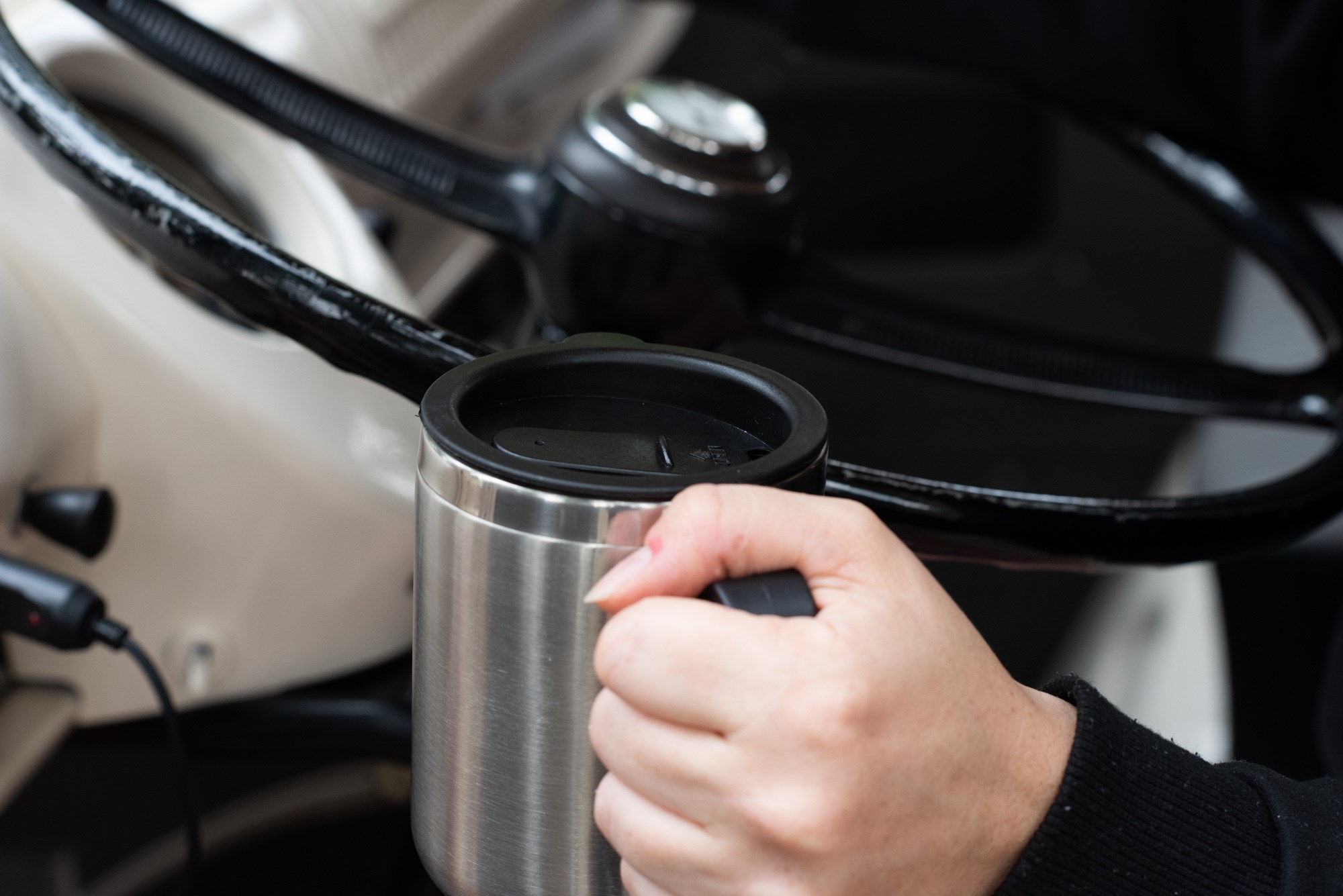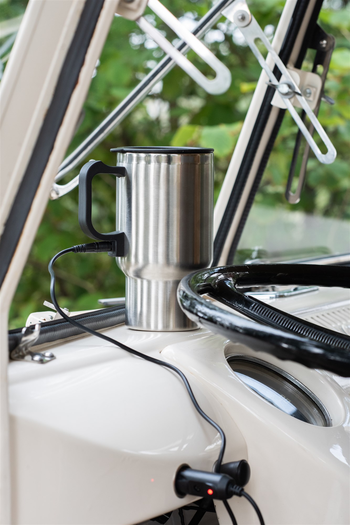 MUG ISOTHERME 12V Inox + PP Inox/noir H 15,5 cm ø 6,8 cm (base)ø 8,6 cm (haut) Grâce à ce mug de voyage, votre boisson est maintenue au chaud ! Avec sa double paroi isotherme et son alimentation en 12V, il gardera votre thé ou votre café à la bonne température, pour savourer une boisson chaude lors de vos trajets. 0,50 litres 230 g