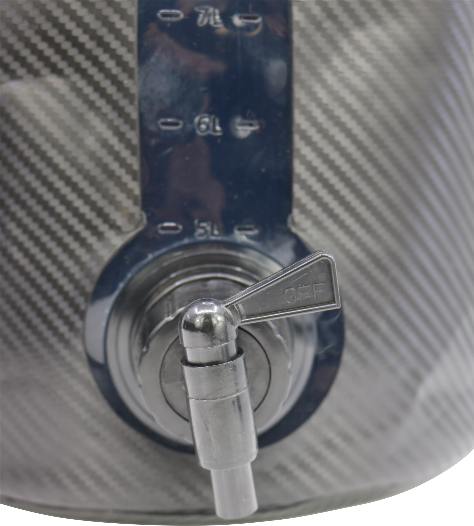 Cet équipement offre l'avantage d'être pliant tout en ayant un robinet et une graduation.