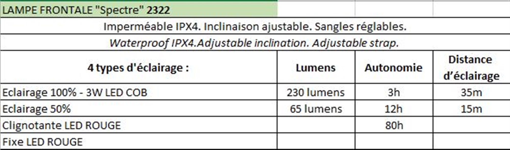 Lampe frontale Imperméable IPX4 Compacte mais performante, cette lampe est un indispensable pour toutes les activités nécessitant un éclairage fiable et rapide, inclinaison ajustable, sangles réglables. Grâce à sa technologie Pico distance, elle offre une portée lumineuse allant jusqu’à 35 mètres, idéale pour éclairer un sentier, un espace de travail ou se déplacer de nuit.