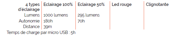 Cette lanterne accumule les bon points : une puissance indiscutable, un variateur pour régler l’intensité d’éclairage, 2 types d'alimentations : à piles ou rechargeable par micro USB. Recharge également les téléphones portable.