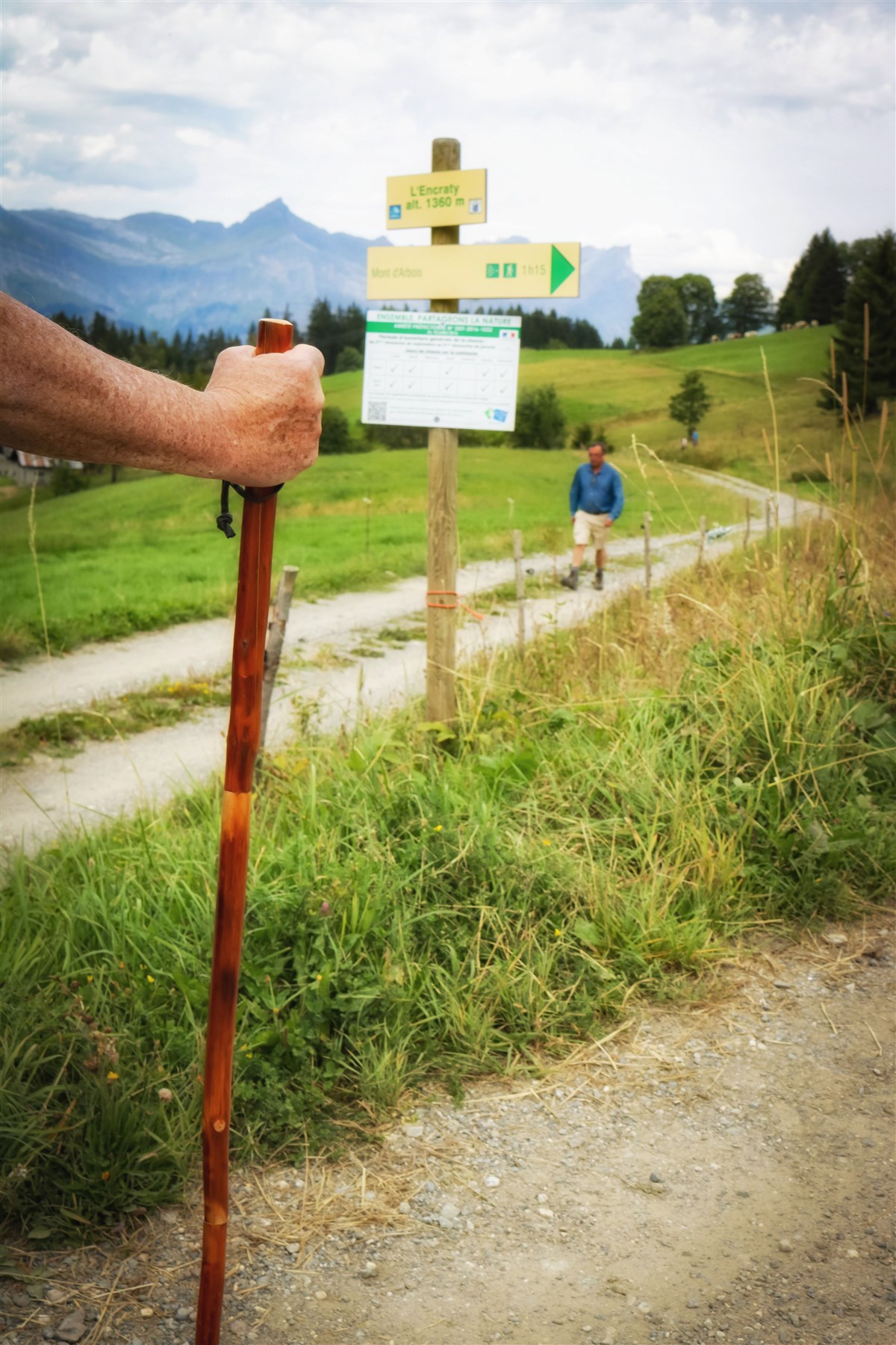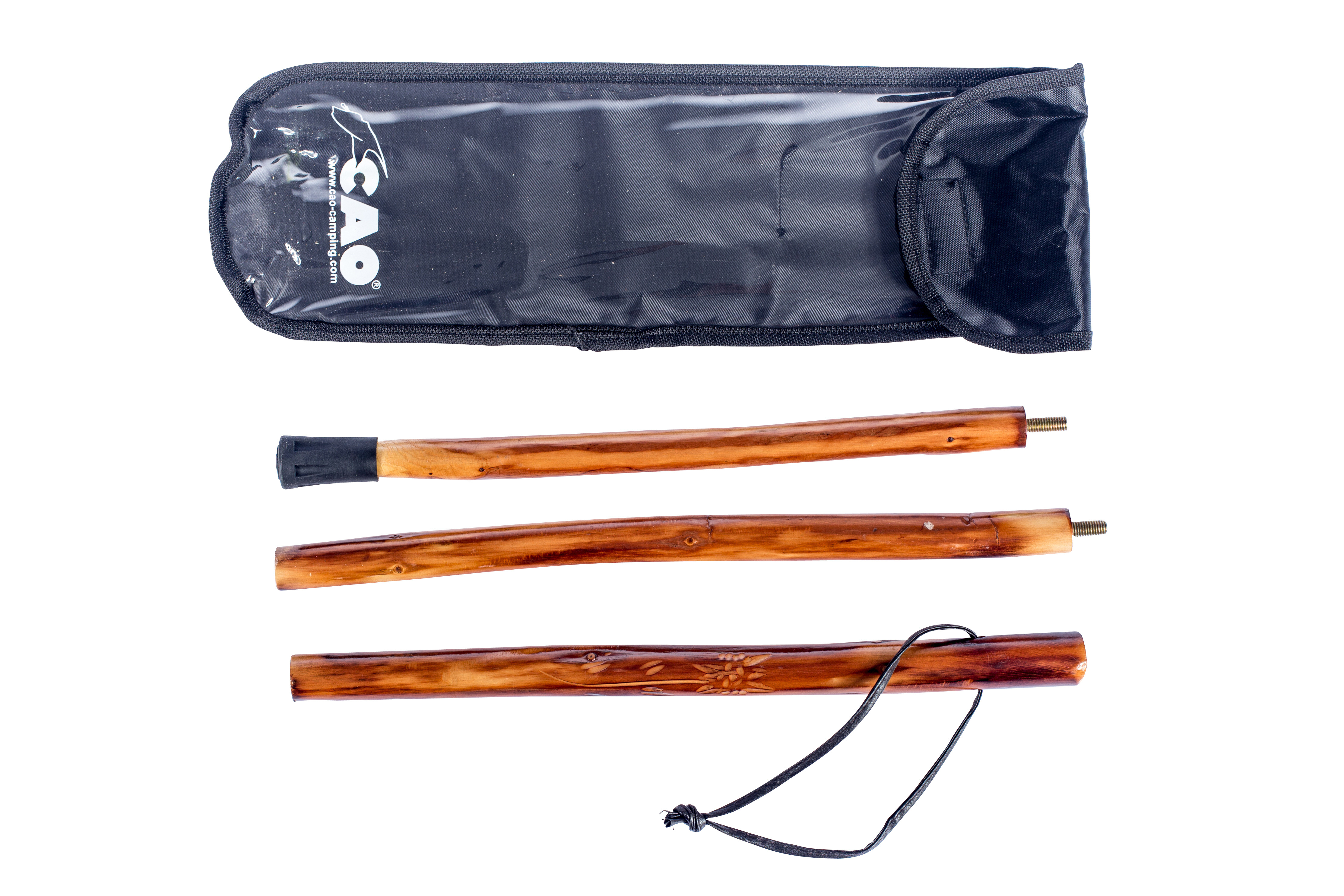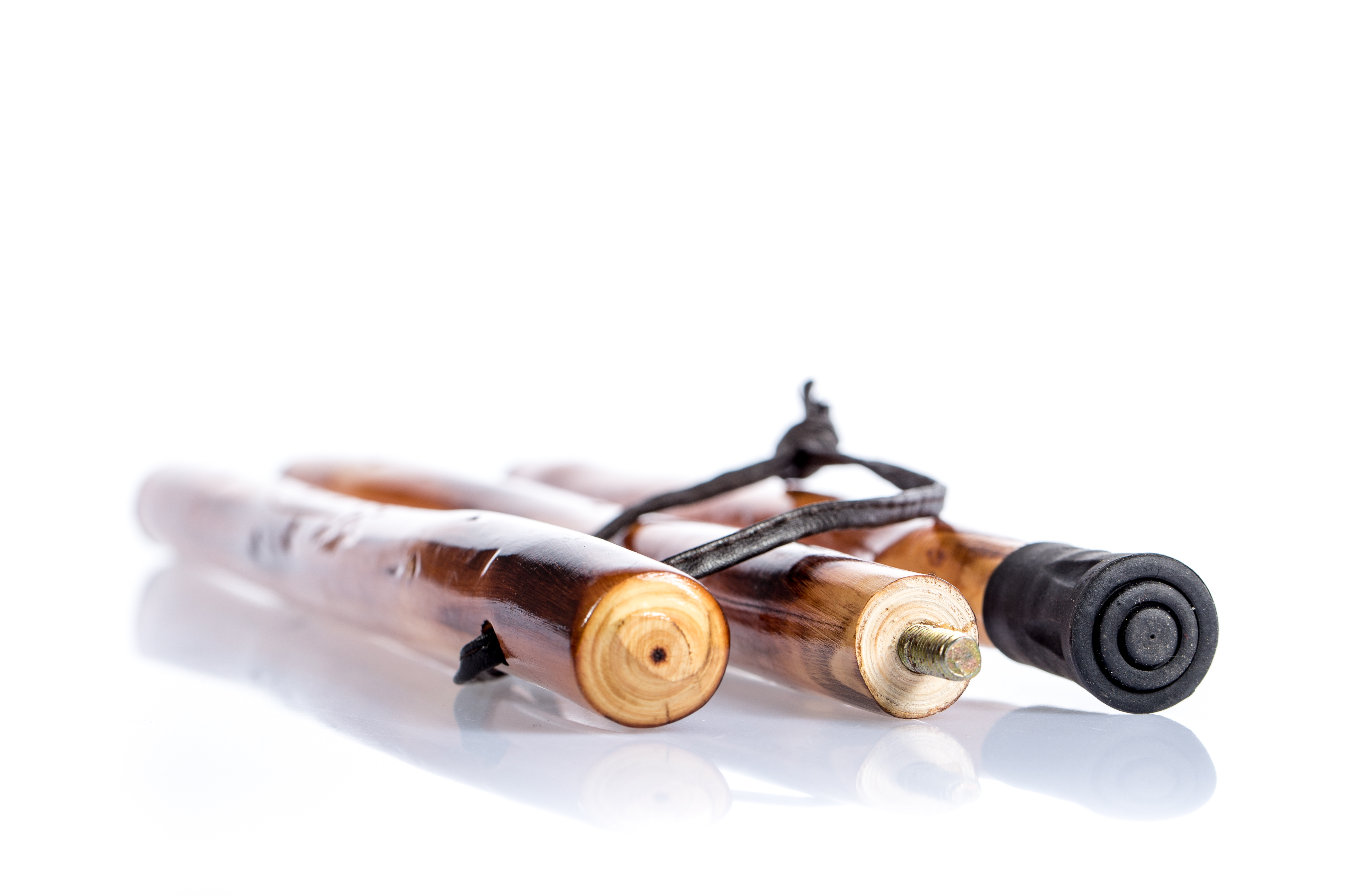 Avec pointe métallique, embout caoutchouc de protection et lanière poignée.