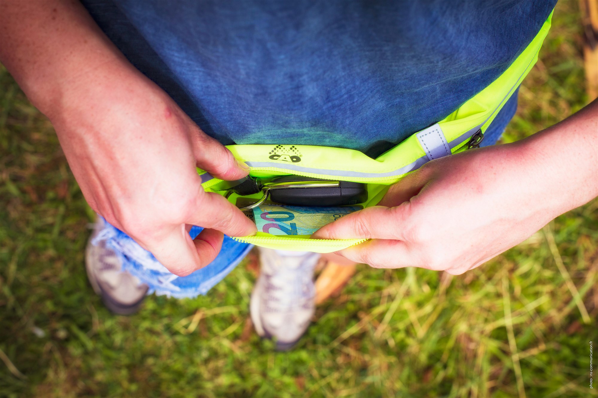 Ceinture double poches zippées et extensibles pour transporter vos affaires en toute sécurité.