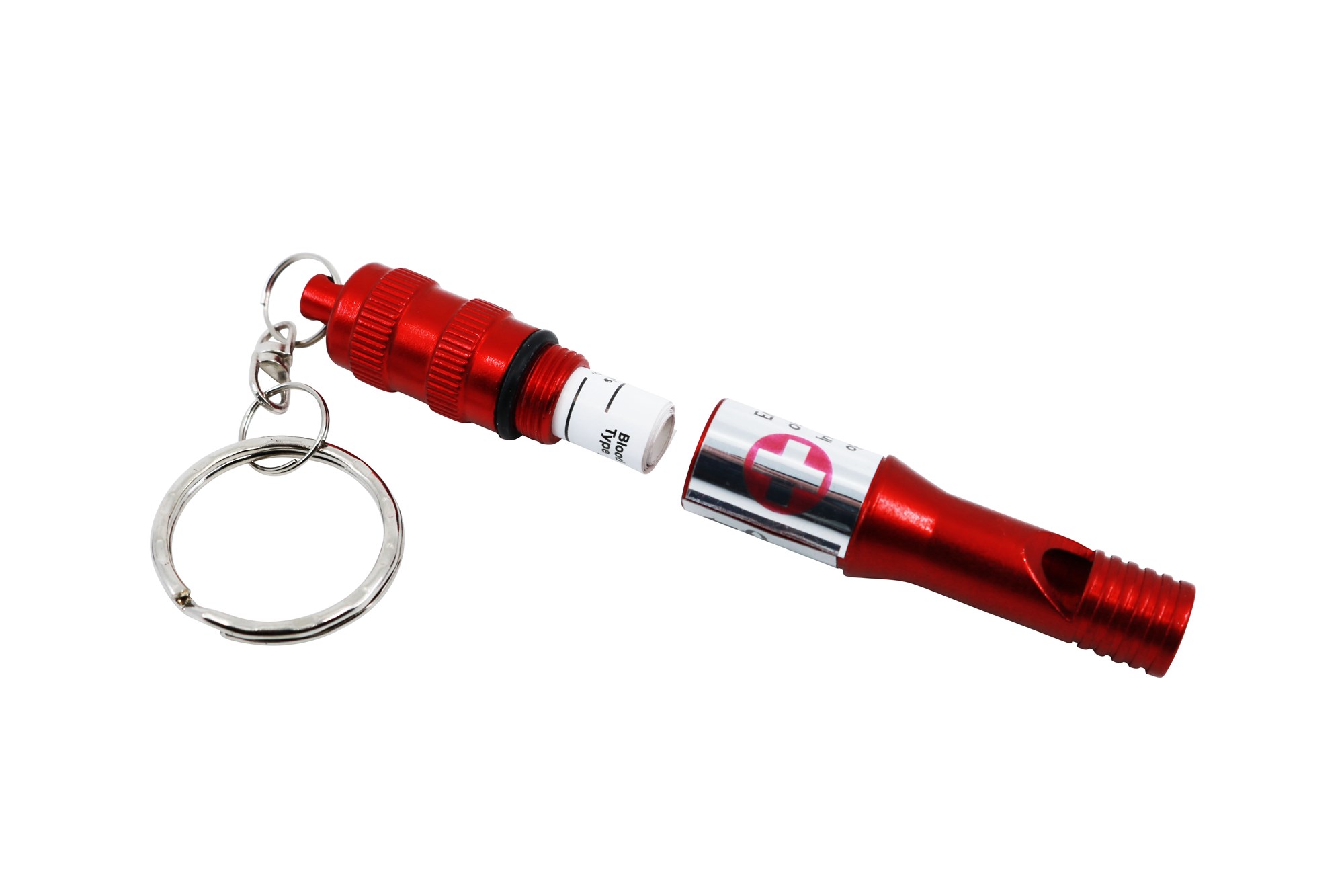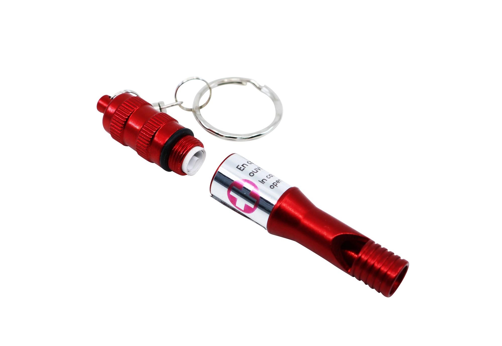 Muni d’un compartiment étanche, dévissable, pour y loger une fiche d’identification d’urgence.